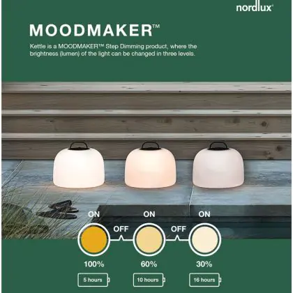 Nordlux Kettle Batterijverlichting Wit 4.8W 300lm - 827 Zeer Warm Wit | 3-Staps Dimbaar